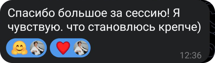 Спасибо большое за сессию! Я чувствую, что становлюсь крепче)